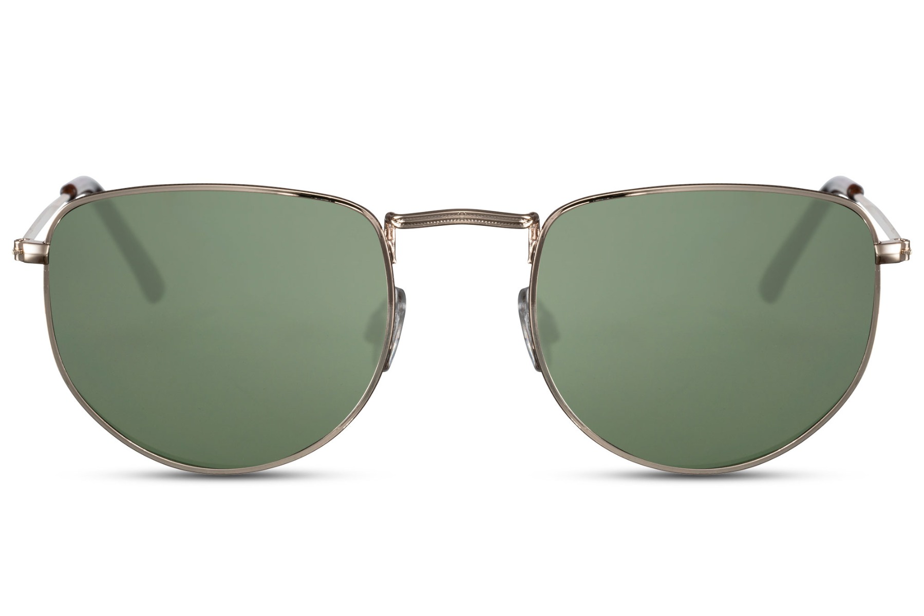 نظارة هندسية صغيرة فاخرة بإطار ذهبي وعدسات خضراء، تمنح إطلالة حيوية وعصرية. مناسبة للجنسين وتضيف لمسة مميزة لأي مشوار يومي أو نشاط خارجي.
